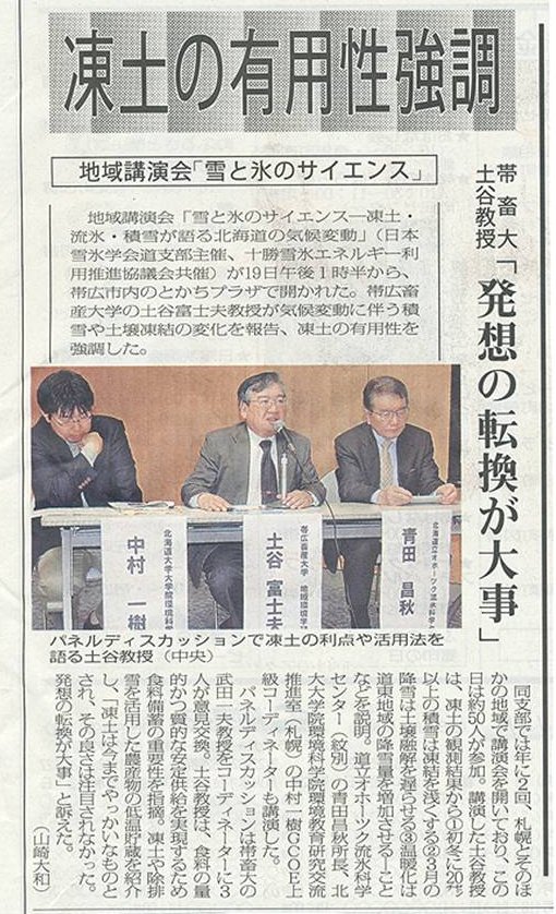 十勝毎日新聞の掲載記事(2009年12月20日)