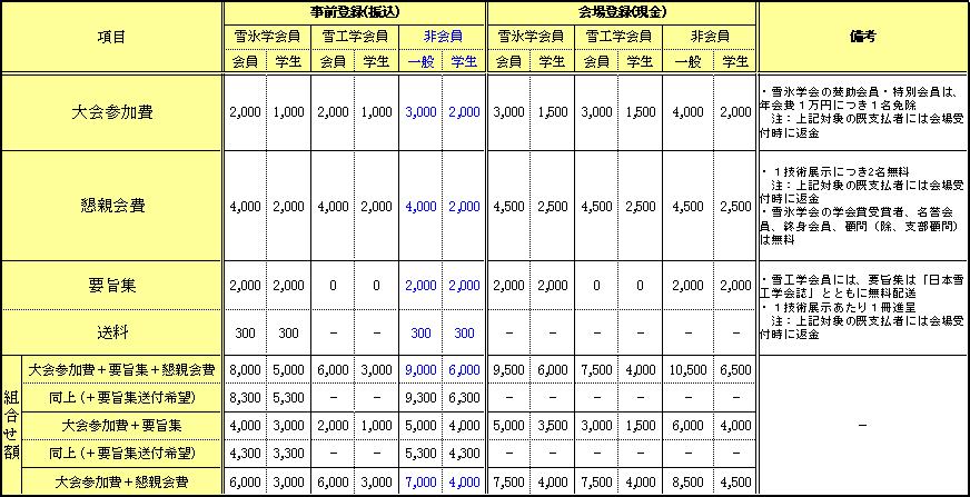 口座名義:雪氷研究大会実行委員会委員長 成田秀明