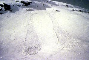 発生し、その跡が発生地点を頂点とした細長い楔形をしている点発生表層雪崩の一例である。このタイプの雪崩は一般に規模が