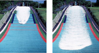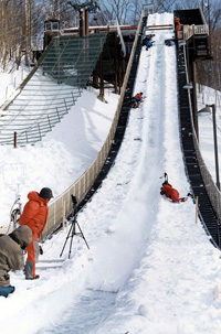 札幌の宮の森ジャンプ競技場の助走路(アプローチ)に作った幅0.8m、深さ0.3m、長さ70mの走路にそって