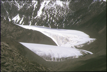 東シベリア・スンタルハイアタ山脈のNo.31氷河(2001年8月) (写真提供:山田知充会員) |
