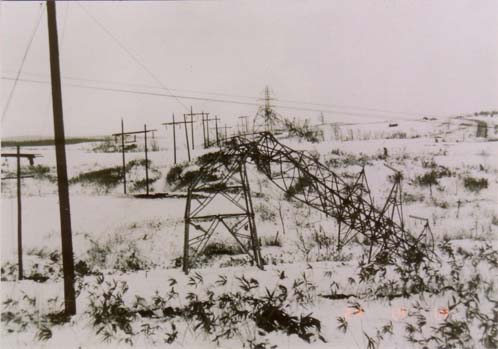 特に、稚内方面に電力を供給する送電線では電線への着雪と風圧により56基の鉄塔が倒壊した。