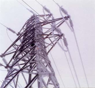 これは鉄塔や電線などに着氷した時の写真である。 (写真提供:北海道電力(株)総合研究所電力グループ) |