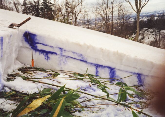<青インク撒布による斜面積雪内での融雪水の流動経路の観察>![]() |