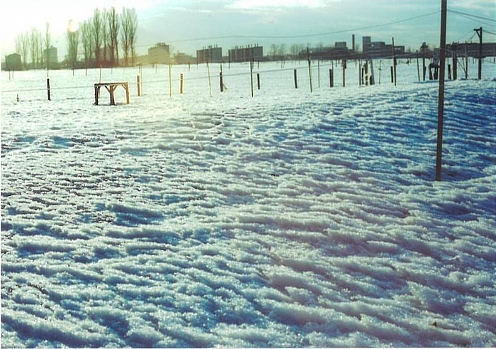 | <斜面の雪の並行な溝> (北海道・旧北大低温研構内) ![]() |